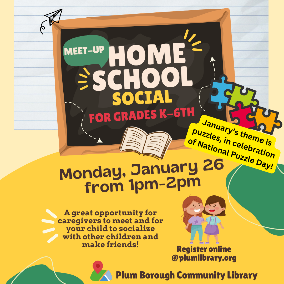 Children of all ages, along with a parent or caregiver, come to the Plum library the first and third Friday of every month, stay and play and make new friends! No registration required. Drop by anytime between 10:00am-12:00pm.